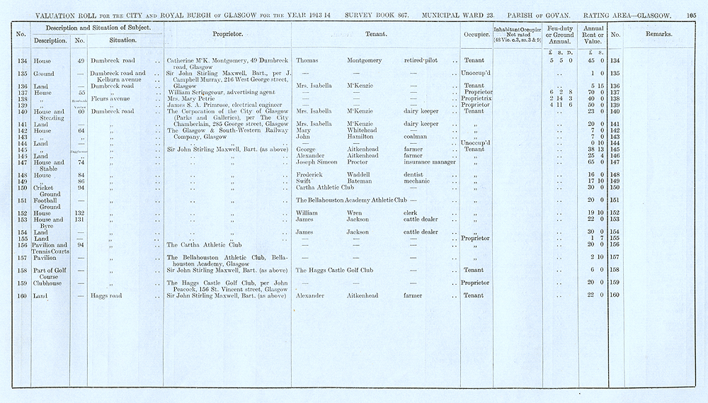 Glasgow Valuation Roll VR 1913-14, Ward 23, p105