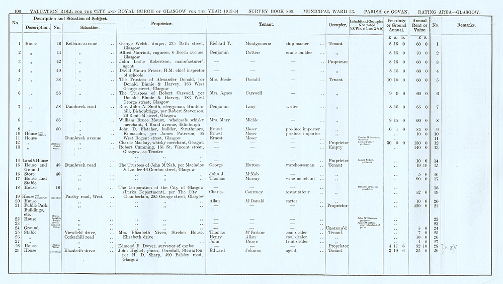Glasgow Valuation Roll VR 1913-14, Ward 23, p106