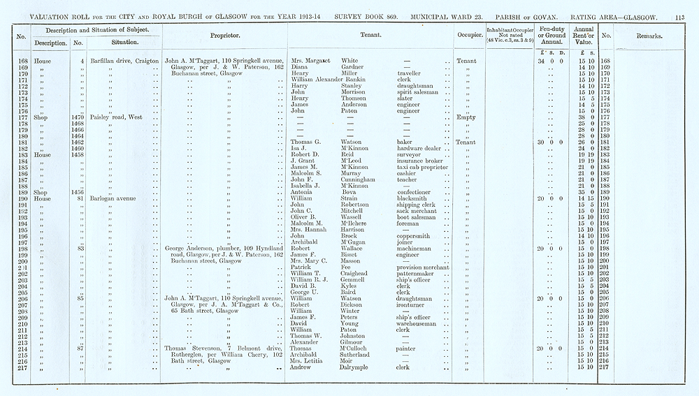 Glasgow Valuation Roll VR 1913-14, Ward 23, p113