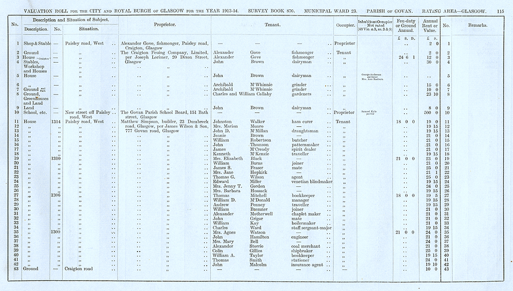 Glasgow Valuation Roll VR 1913-14, Ward 23, p115