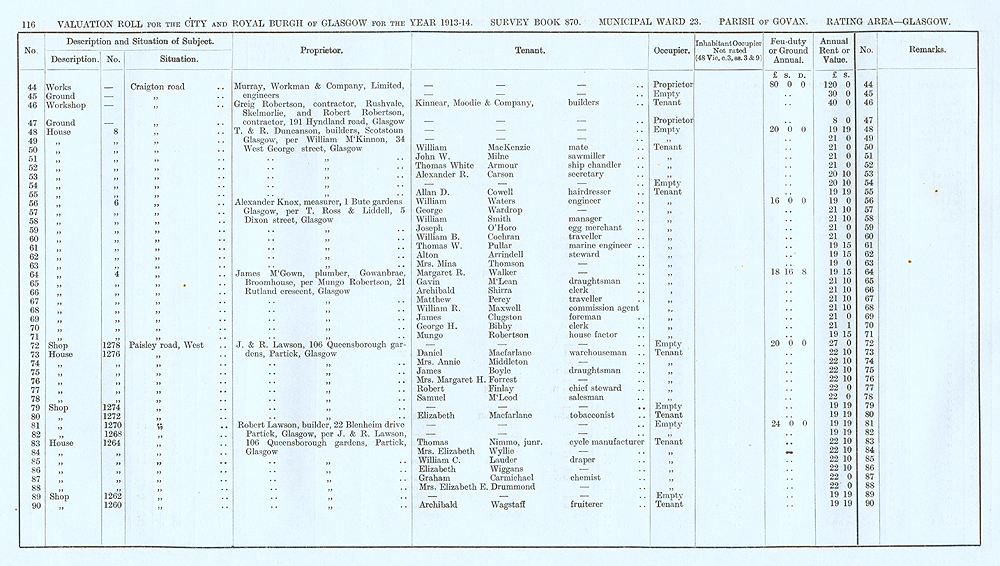 Glasgow Valuation Roll VR 1913-14, Ward 23, p116