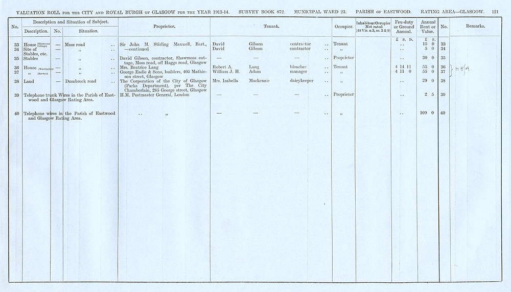 Glasgow Valuation Roll VR 1913-14, Ward 23, p121