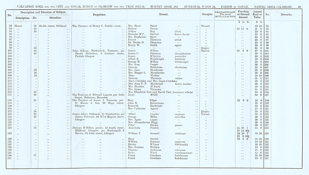 Glasgow Valuation Roll VR 1913-14, Ward 24, p049