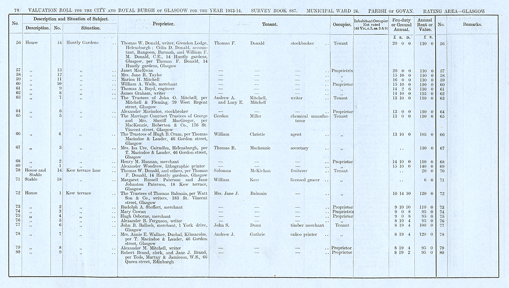 Glasgow Valuation Roll VR 1913-14, Ward 24, p078