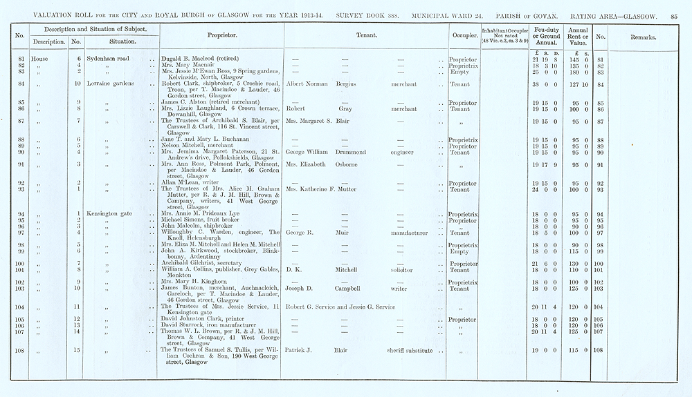 Glasgow Valuation Roll VR 1913-14, Ward 24, p085