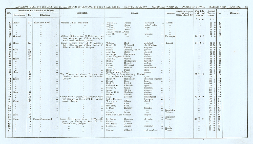 Glasgow Valuation Roll VR 1913-14, Ward 24, p093