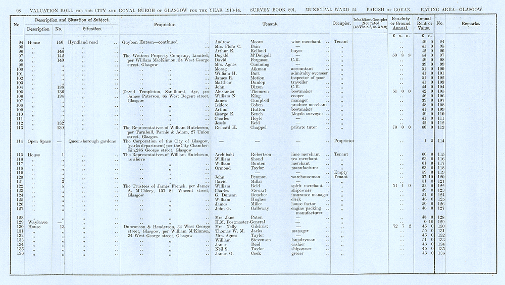 Glasgow Valuation Roll VR 1913-14, Ward 24, p098