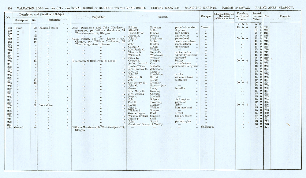 Glasgow Valuation Roll VR 1913-14, Ward 24, p106