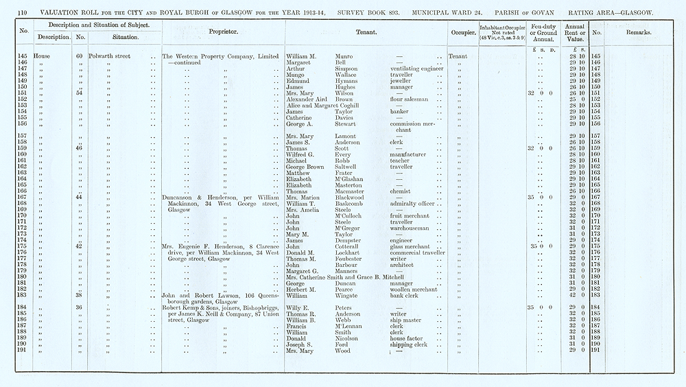 Glasgow Valuation Roll VR 1913-14, Ward 24, p110