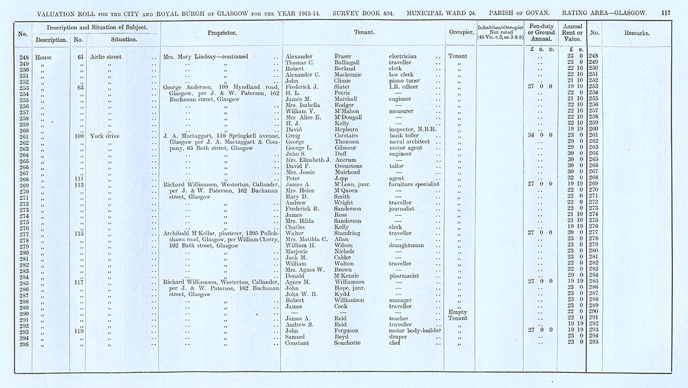 Glasgow Valuation Roll VR 1913-14, Ward 24, p117