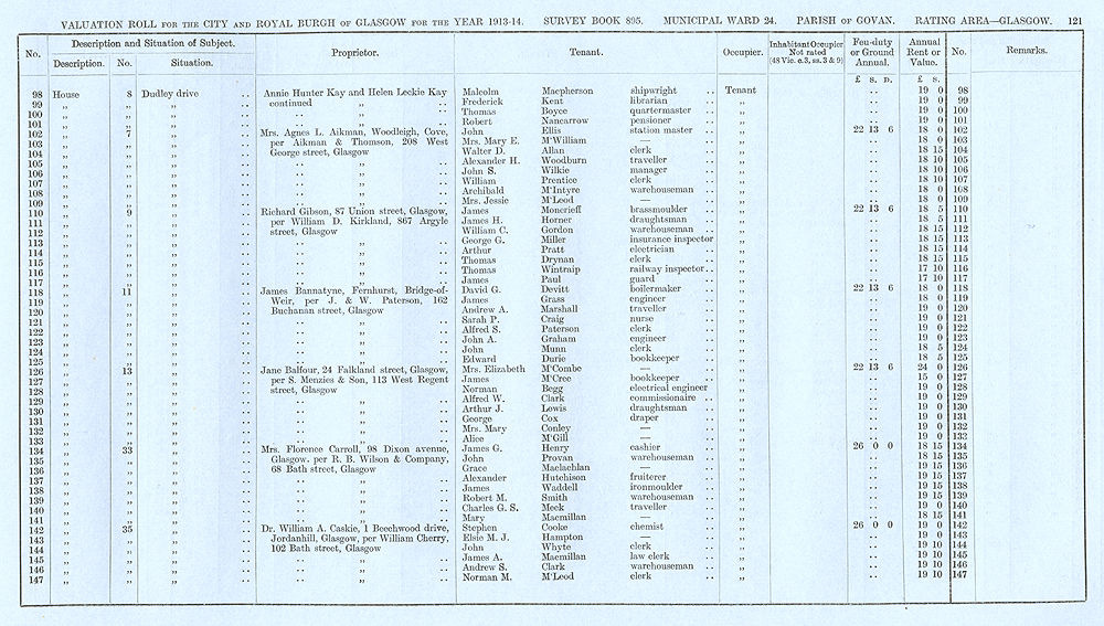 Glasgow Valuation Roll VR 1913-14, Ward 24, p121