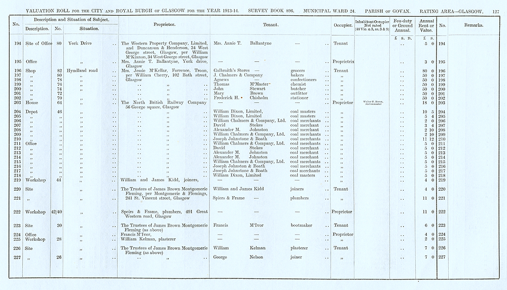 Glasgow Valuation Roll VR 1913-14, Ward 24, p127