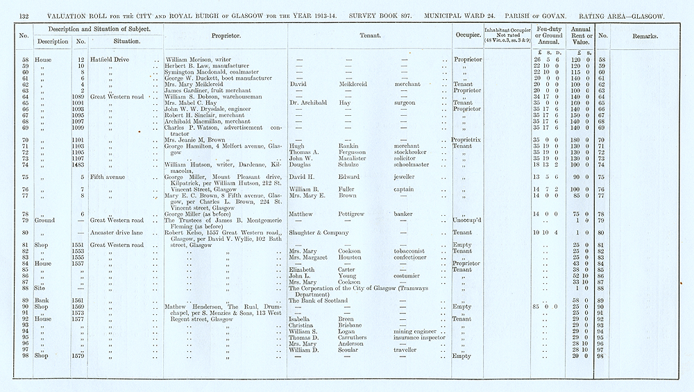 Glasgow Valuation Roll VR 1913-14, Ward 24, p132