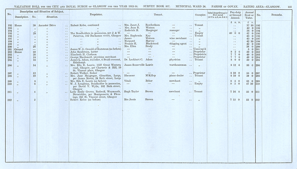 Glasgow Valuation Roll VR 1913-14, Ward 24, p135