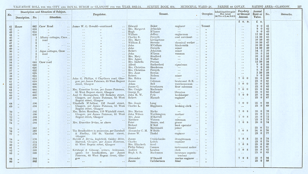 Glasgow Valuation Roll VR 1913-14, Ward 24, p137