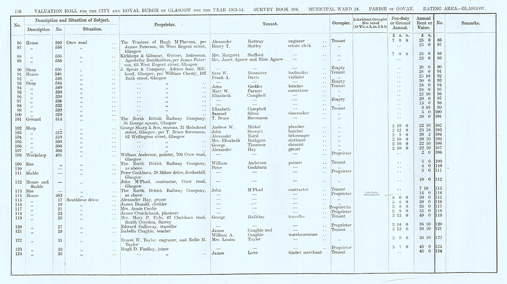 Glasgow Valuation Roll VR 1913-14, Ward 24, p138