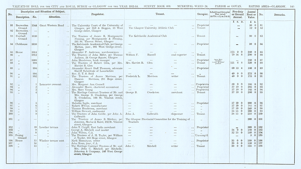 Glasgow Valuation Roll VR 1913-14, Ward 24, p145
