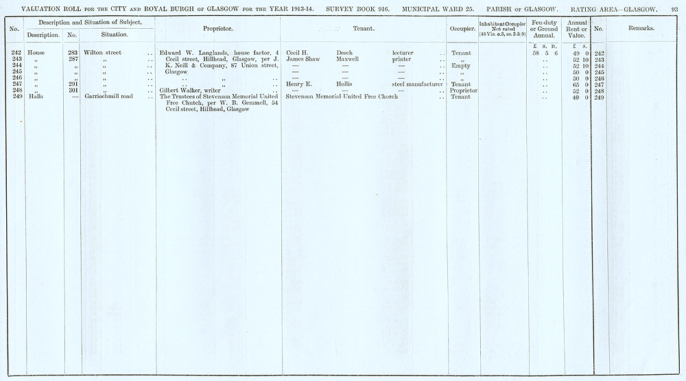 Glasgow Valuation Roll VR 1913-14, Ward 25, p093