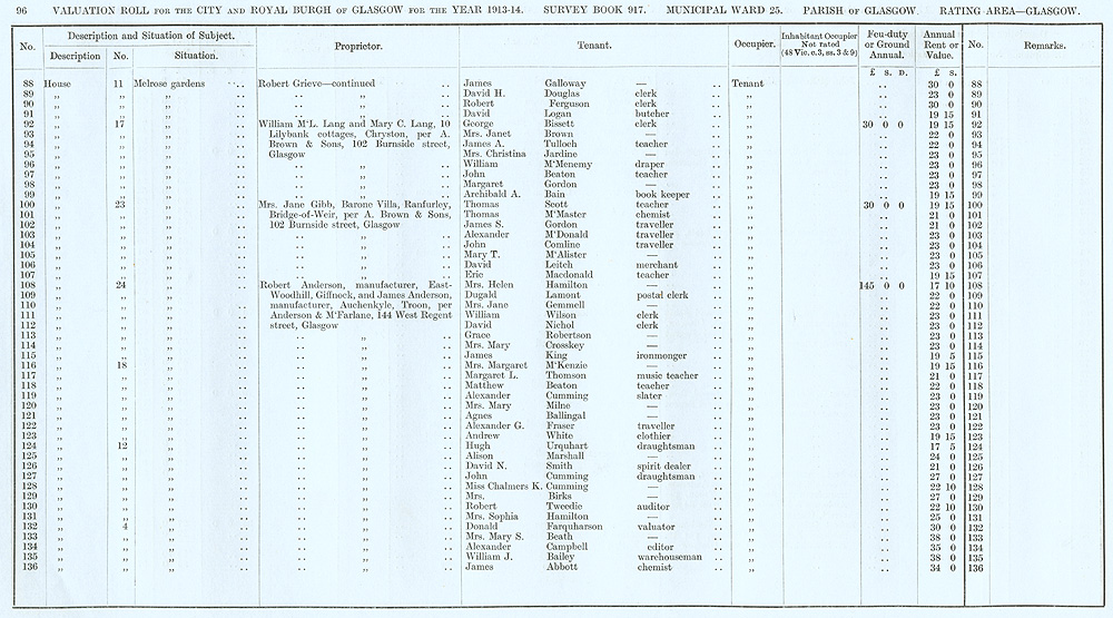 Glasgow Valuation Roll VR 1913-14, Ward 25, p096