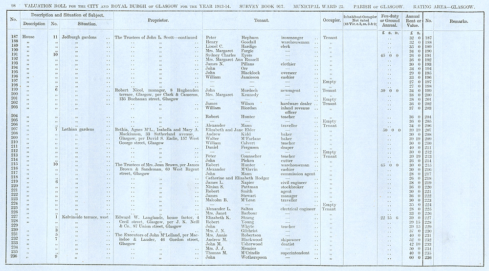 Glasgow Valuation Roll VR 1913-14, Ward 25, p098