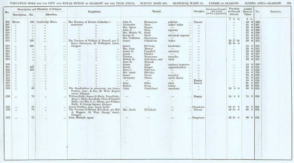 Glasgow Valuation Roll VR 1913-14, Ward 25, p105