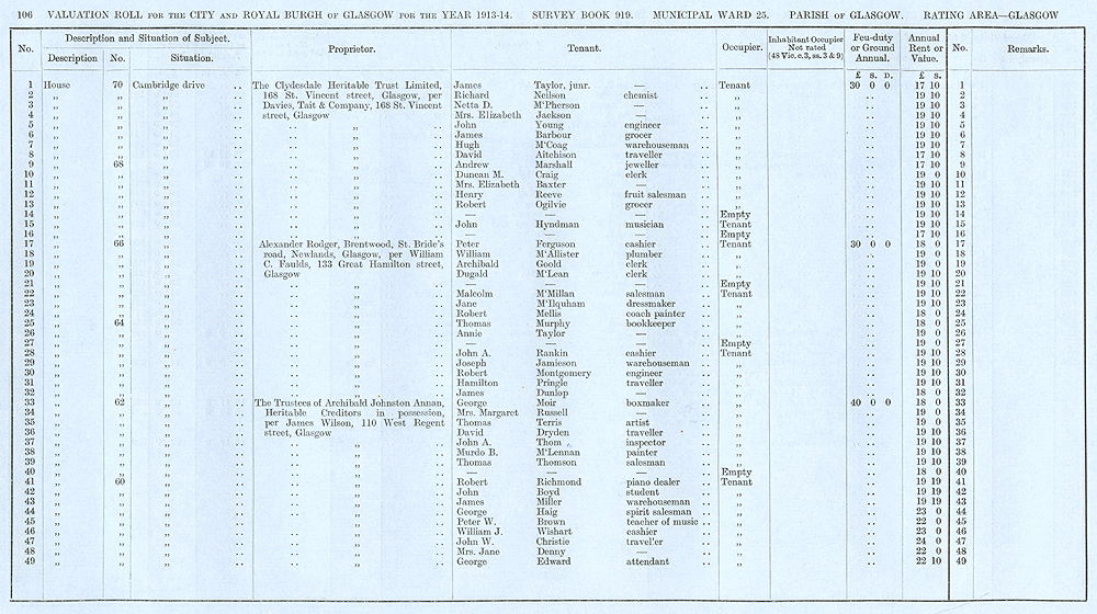 Glasgow Valuation Roll VR 1913-14, Ward 25, p106