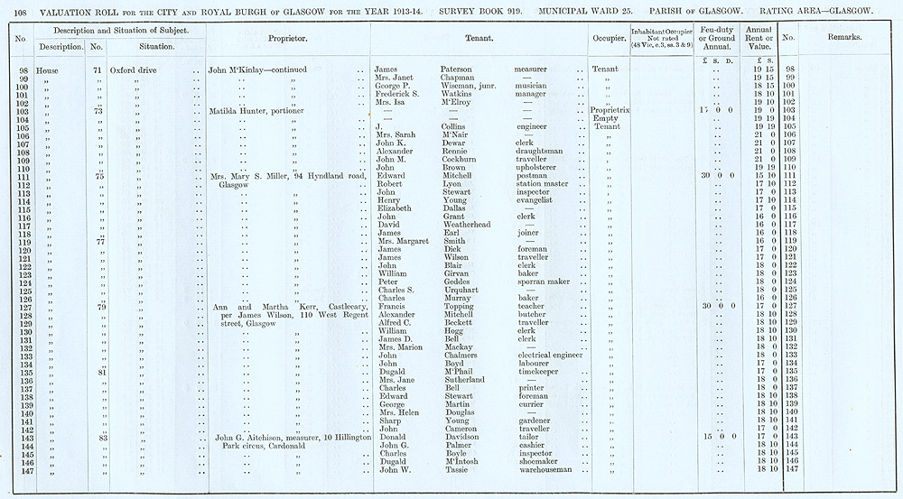 Glasgow Valuation Roll VR 1913-14, Ward 25, p108