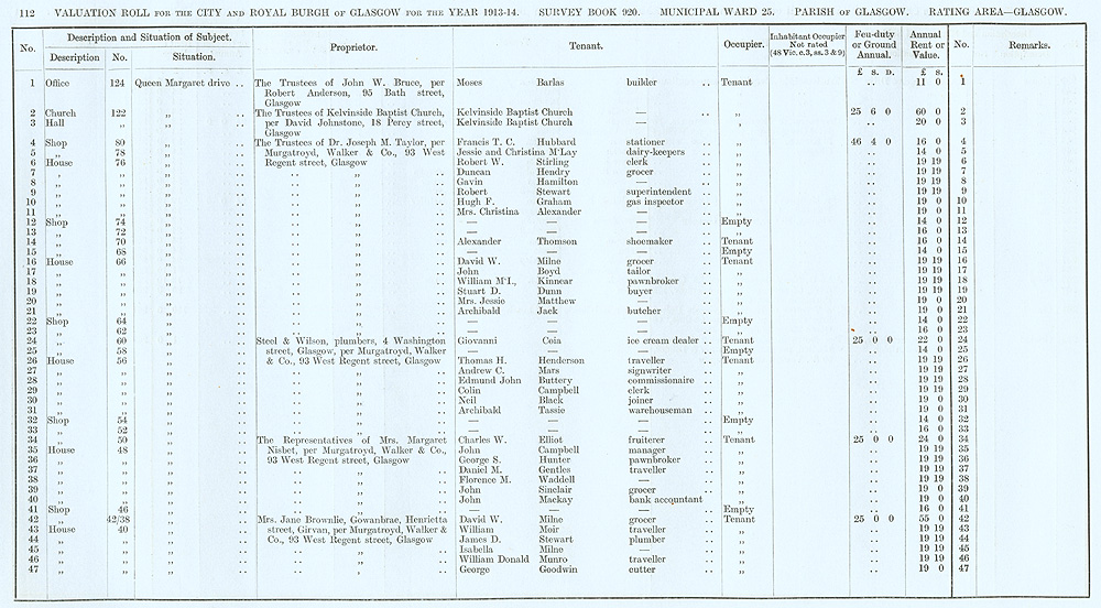 Glasgow Valuation Roll VR 1913-14, Ward 25, p112