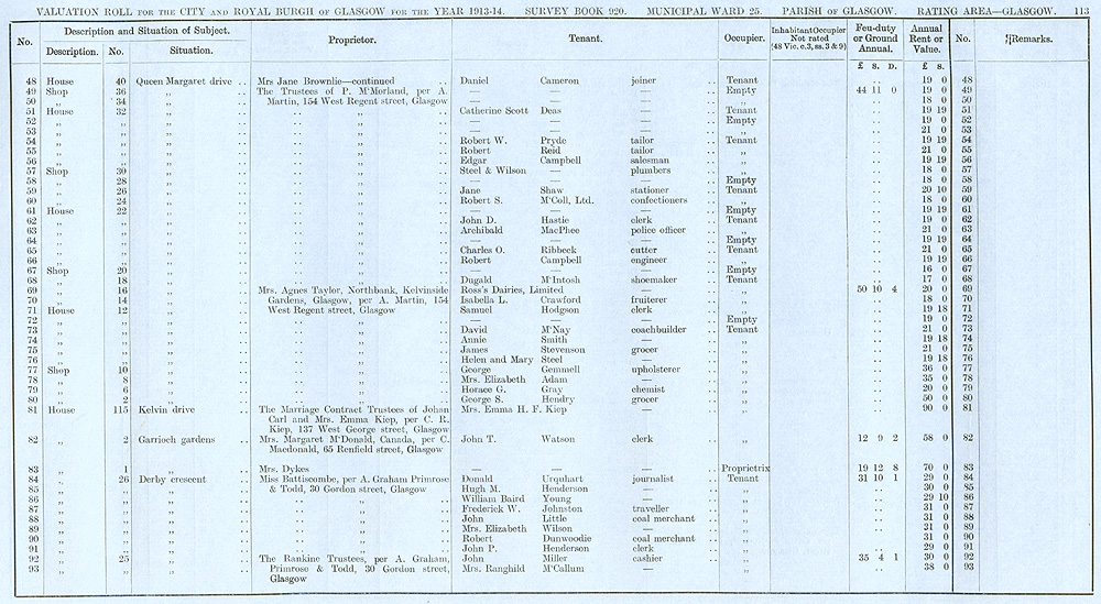 Glasgow Valuation Roll VR 1913-14, Ward 25, p113