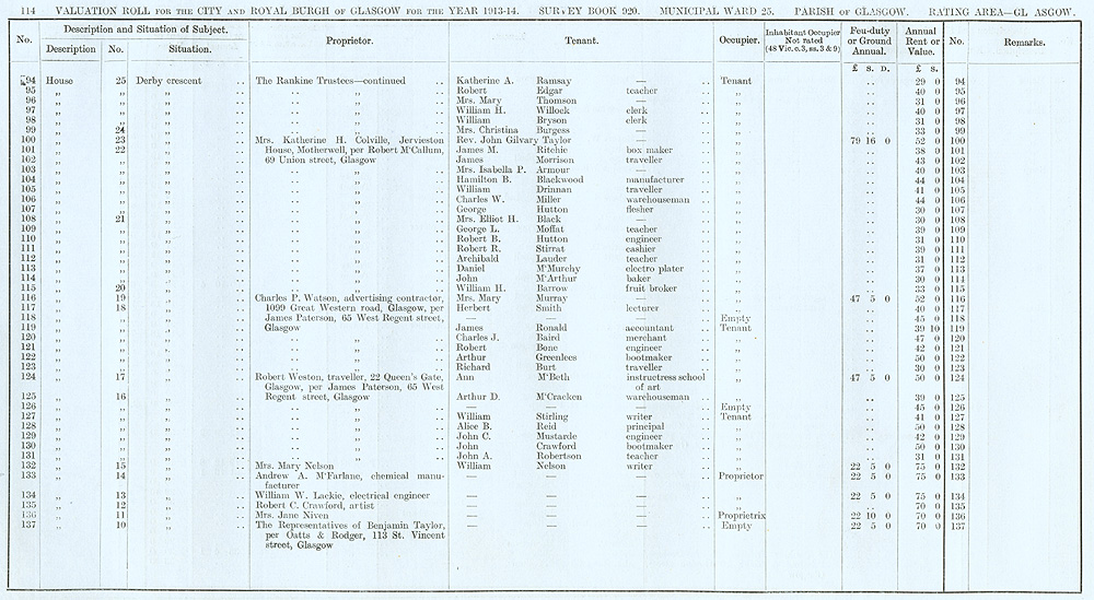 Glasgow Valuation Roll VR 1913-14, Ward 25, p114