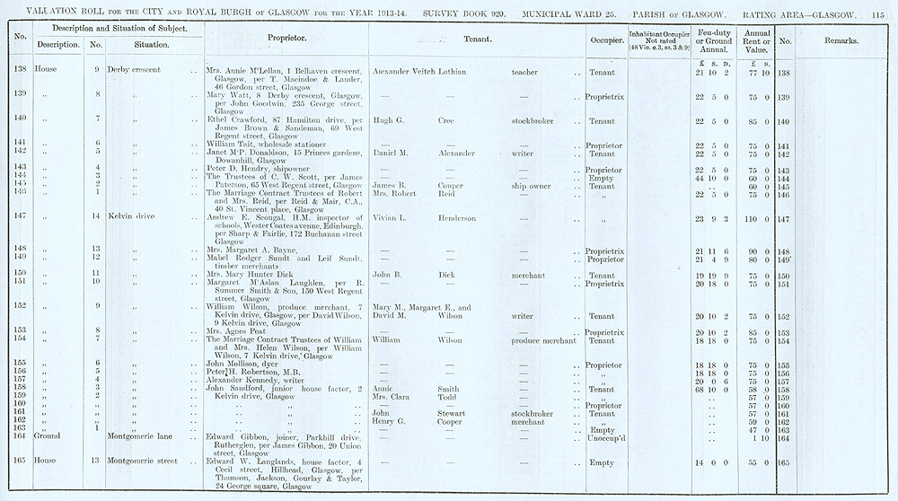 Glasgow Valuation Roll VR 1913-14, Ward 25, p115