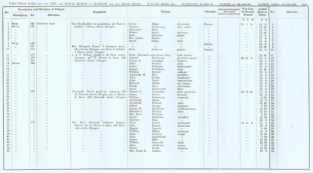 Glasgow Valuation Roll VR 1913-14, Ward 25, p119
