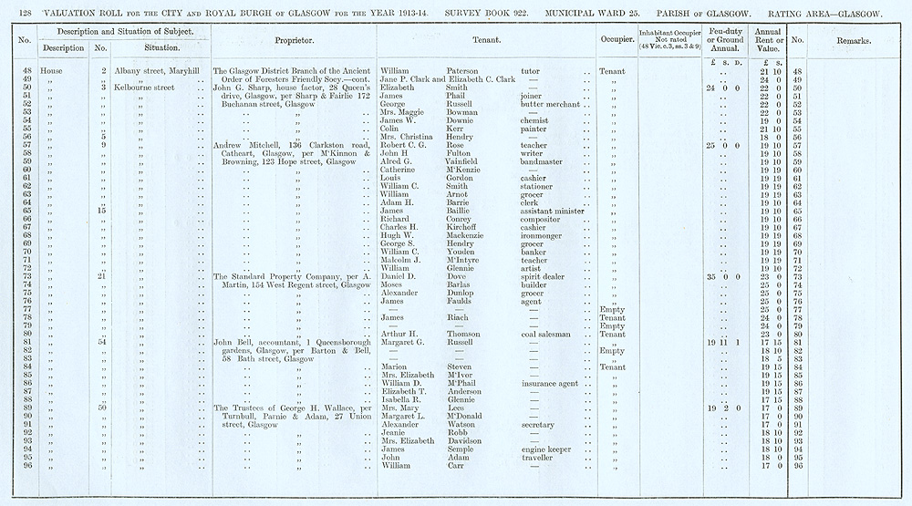 Glasgow Valuation Roll VR 1913-14, Ward 25, p128