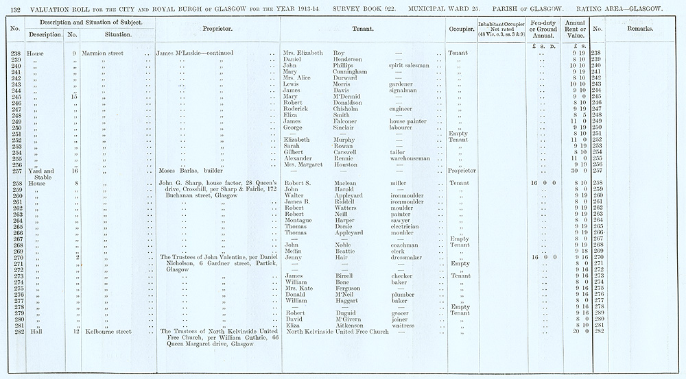 Glasgow Valuation Roll VR 1913-14, Ward 25, p132