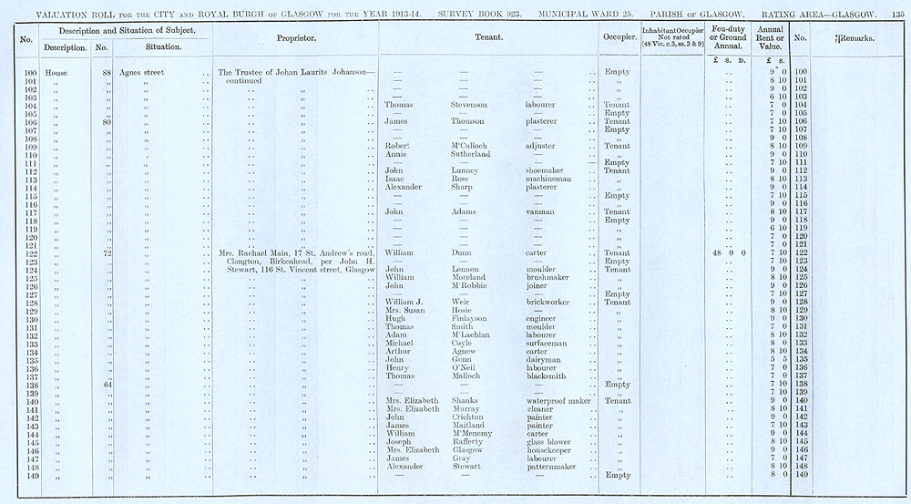 Glasgow Valuation Roll VR 1913-14, Ward 25, p135