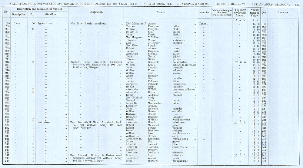 Glasgow Valuation Roll VR 1913-14, Ward 25, p137