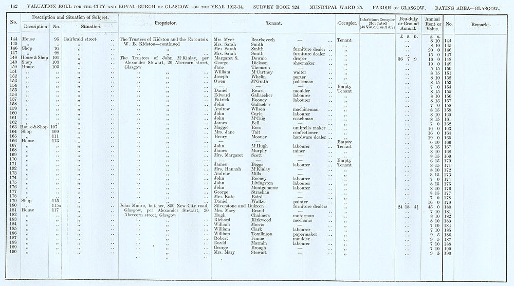 Glasgow Valuation Roll VR 1913-14, Ward 25, p142