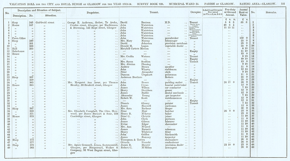 Glasgow Valuation Roll VR 1913-14, Ward 25, p151