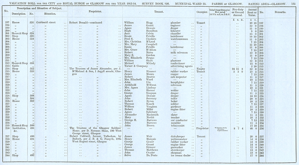 Glasgow Valuation Roll VR 1913-14, Ward 25, p155
