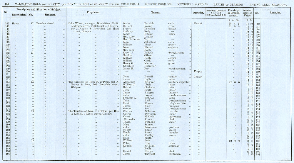 Glasgow Valuation Roll VR 1913-14, Ward 25, p166