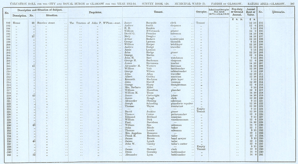 Glasgow Valuation Roll VR 1913-14, Ward 25, p167