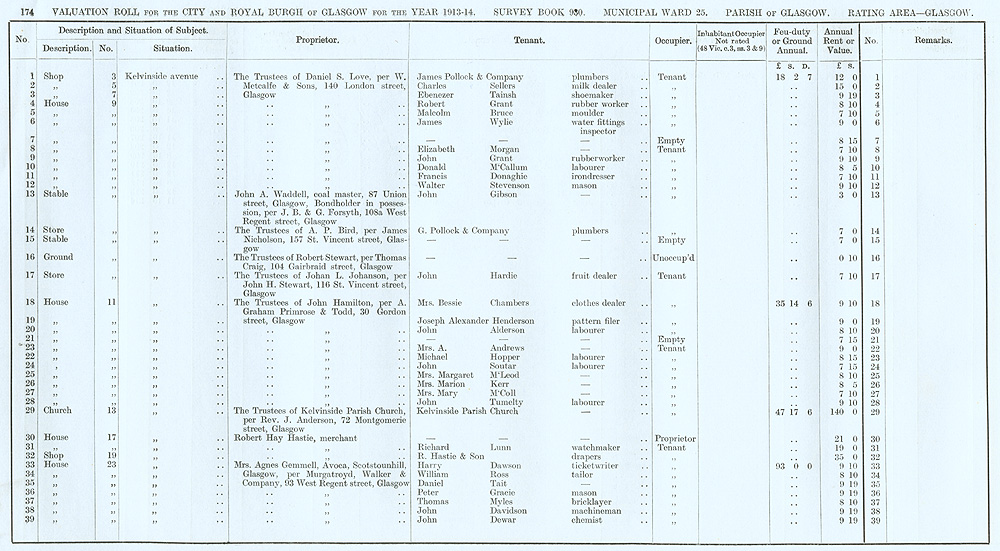 Glasgow Valuation Roll VR 1913-14, Ward 25, p174