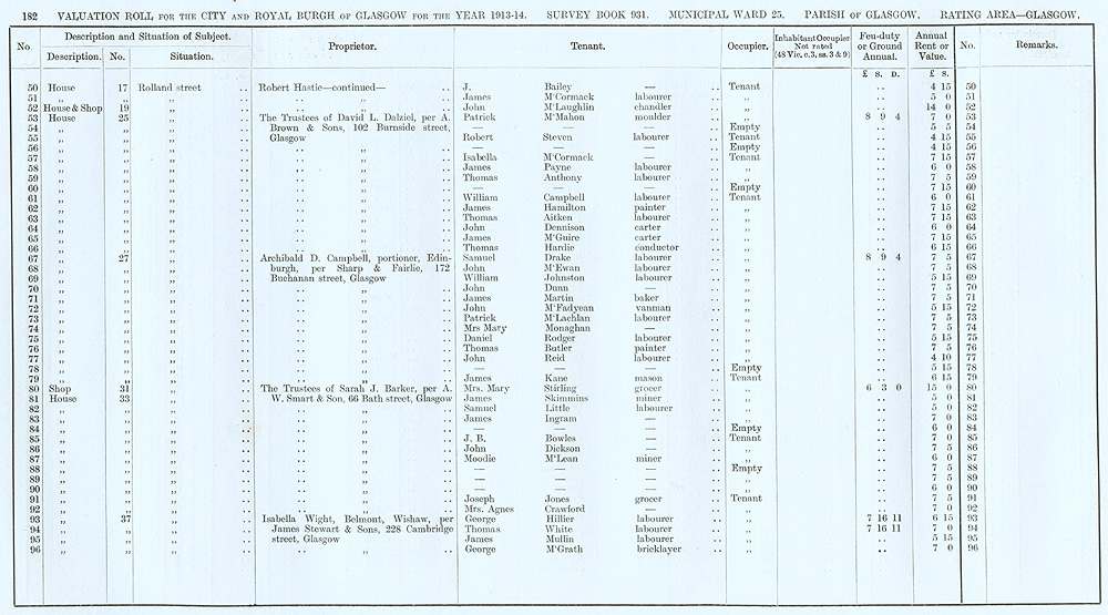Glasgow Valuation Roll VR 1913-14, Ward 25, p182