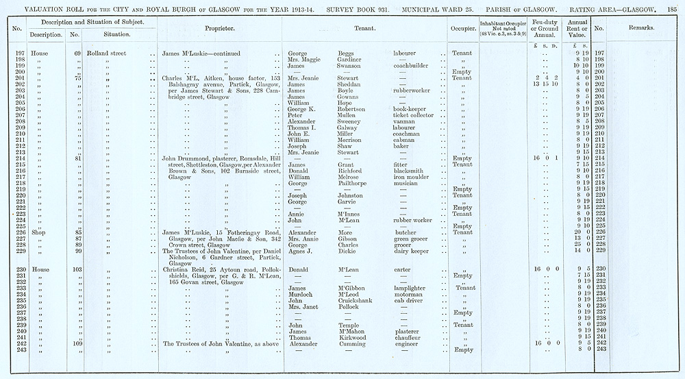 Glasgow Valuation Roll VR 1913-14, Ward 25, p185