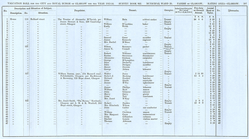 Glasgow Valuation Roll VR 1913-14, Ward 25, p187