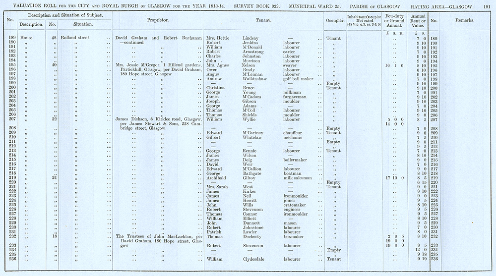 Glasgow Valuation Roll VR 1913-14, Ward 25, p191