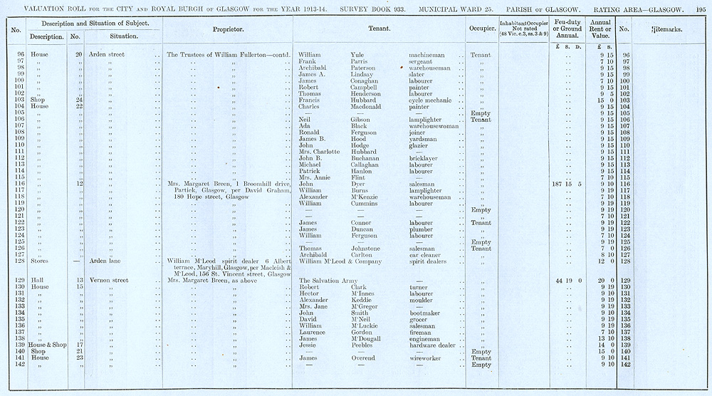 Glasgow Valuation Roll VR 1913-14, Ward 25, p195