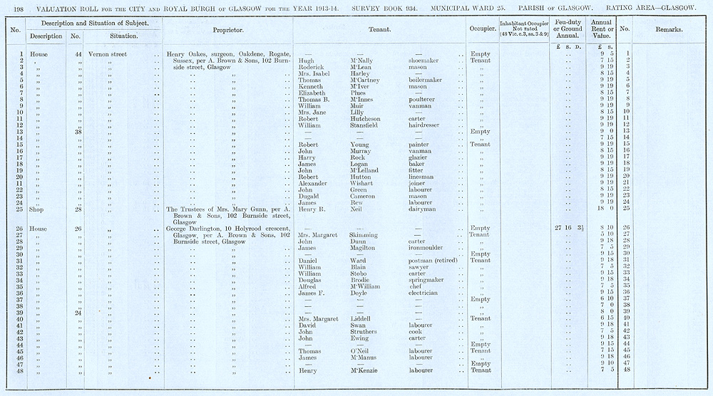 Glasgow Valuation Roll VR 1913-14, Ward 25, p198