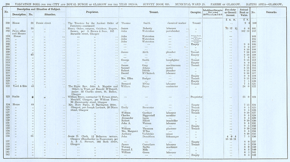 Glasgow Valuation Roll VR 1913-14, Ward 25, p206