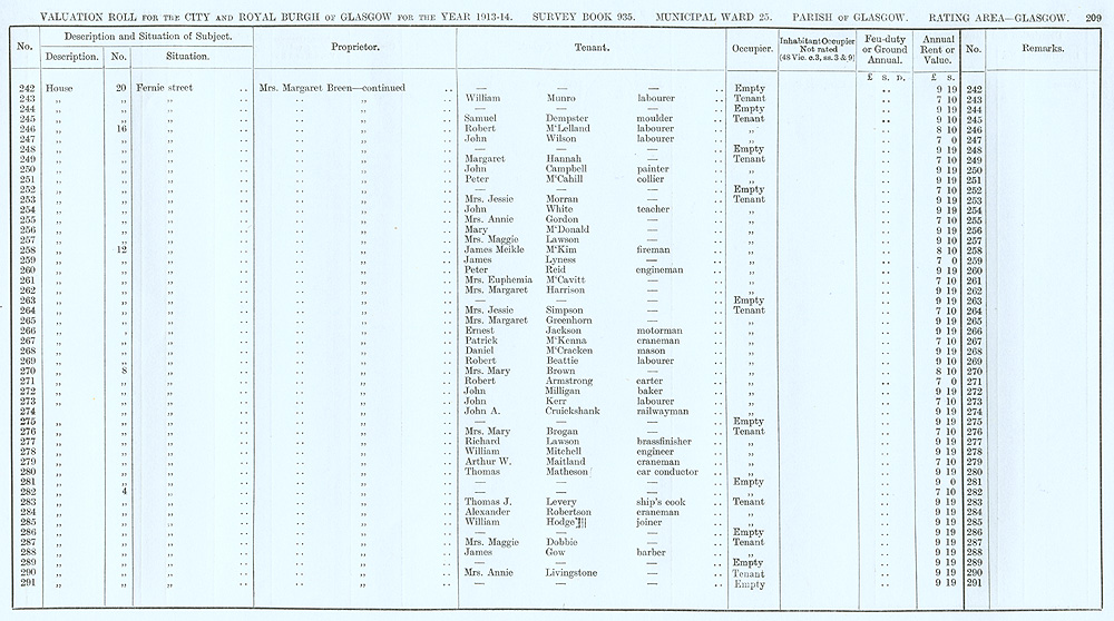 Glasgow Valuation Roll VR 1913-14, Ward 25, p209